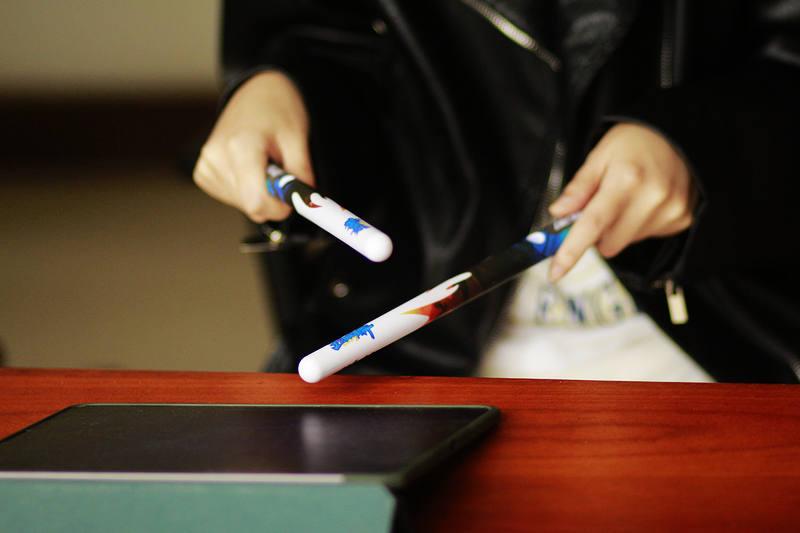 此外,体感架子鼓的重量显得十分轻盈,单只鼓棒的重量仅为80g,所以我们出门可以随身携带,外放声音可让你在聚会上嗨翻全场。