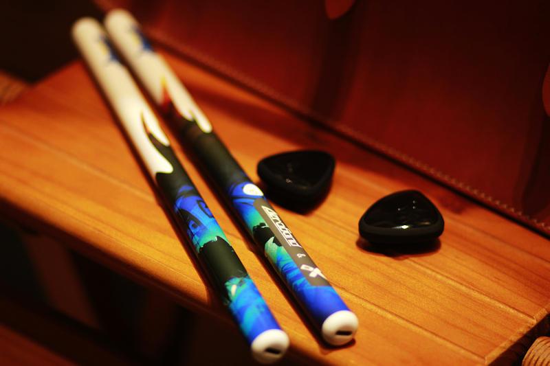 让人惊喜的是,它不仅限于单一音色,有标准原声鼓、电子鼓、金属摇滚等多种声源可选,带来更多样的鼓世界,声源的切换非常简单。脚鼓踩镲实际上是空气拨片配上硅胶套,用于体感架子鼓它就是脚步传感器,可以通过单击拨片按键来一键切换脚鼓或踩镲模式。