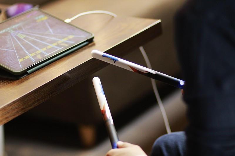 体感架子鼓的鼓棒在敲击时会有真实的震动反馈,所以即便是敲空气也有很好的手感,它的使用也不限制地点、时间。当我们戴上耳机,架子鼓发出的声音只要自己能听到,在深夜练习也不会扰民。要是想要更好的音质效果,还可以连上音响,带来更强的沉浸感。体感架子鼓是一款黑科技产品,满足了普通人的鼓手梦,通过游戏方式进行教学,有着真实的打击感。