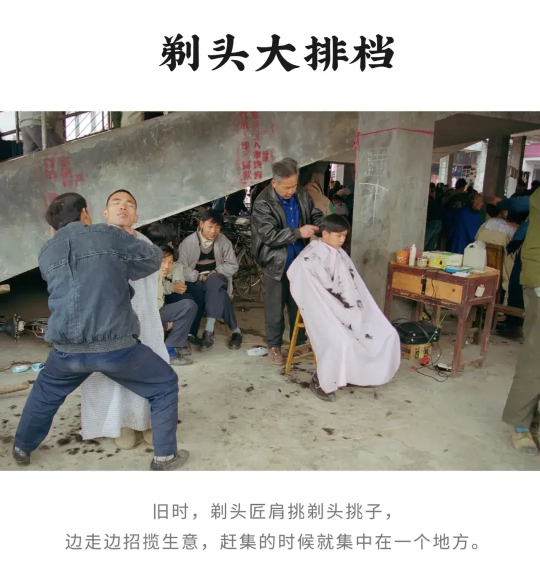 有剪头发的,还有收购头发的。