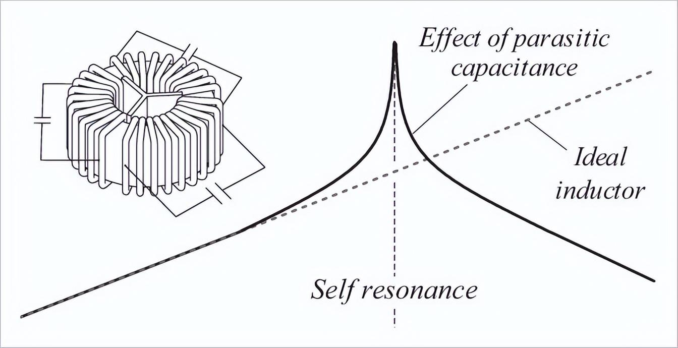对于电感情况略微复杂一些,它具有绕线间的寄生电容以及电极之间的寄生电容。绕线中的电阻也比电容介电损耗大,所以电感的Q值往往比较低。