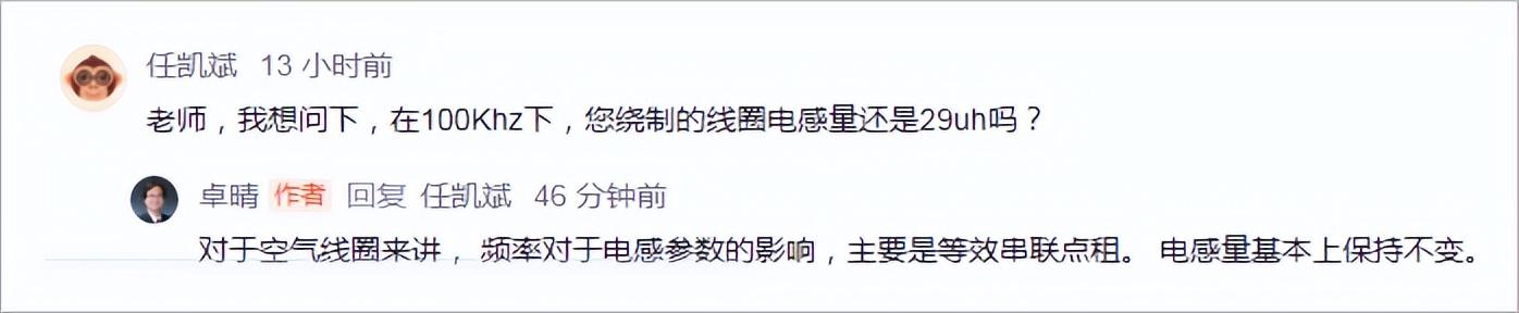 老师,我想询问下, 100kHz下,您绕制的线圈电感还是29uH吗?