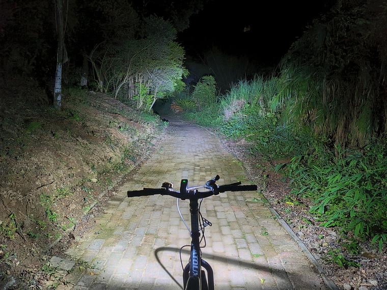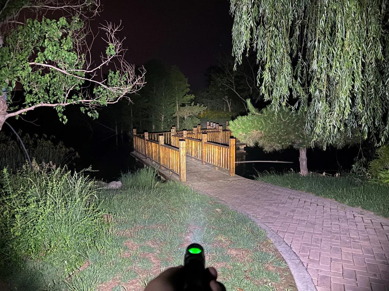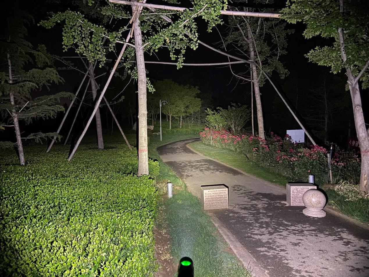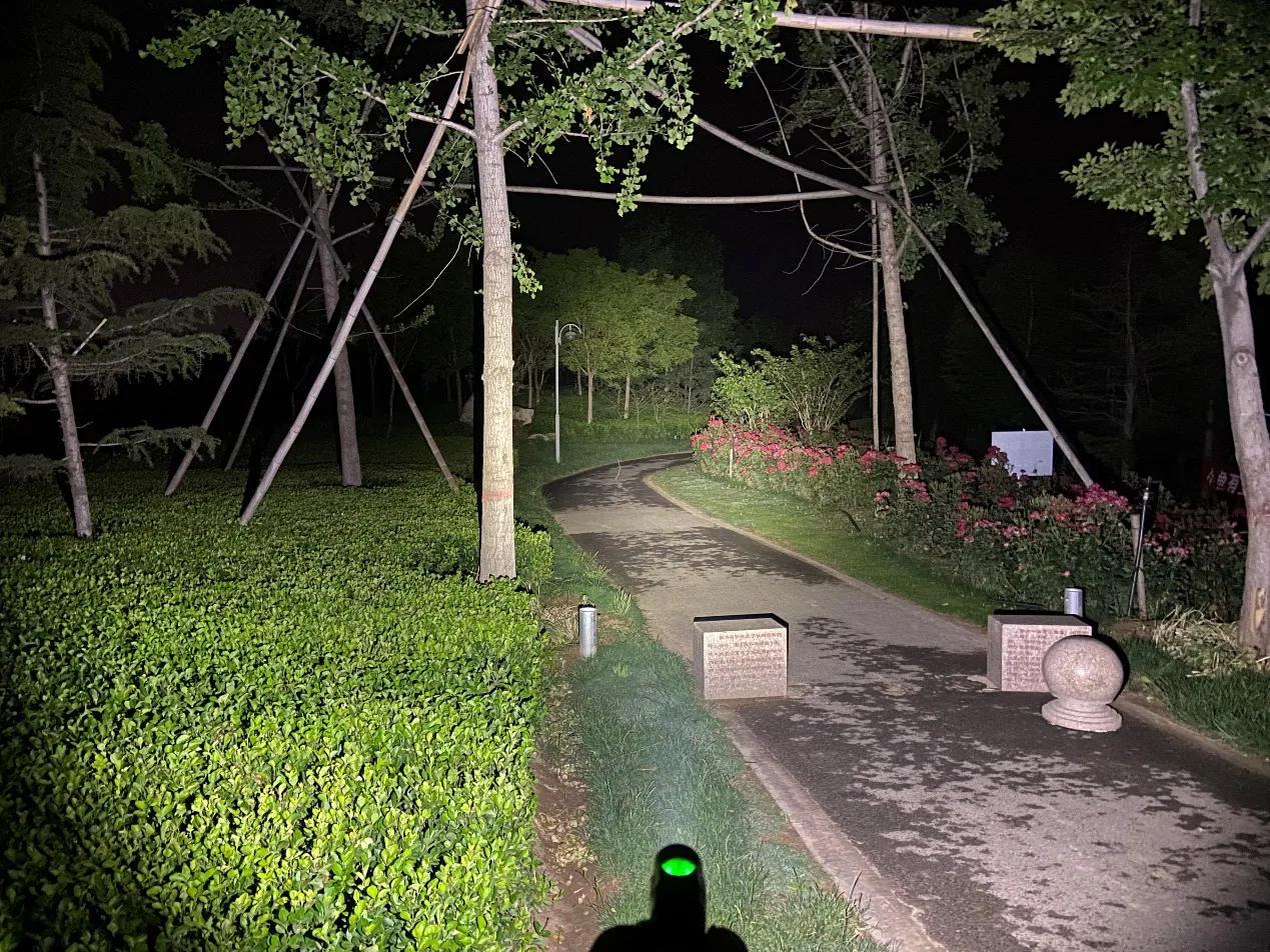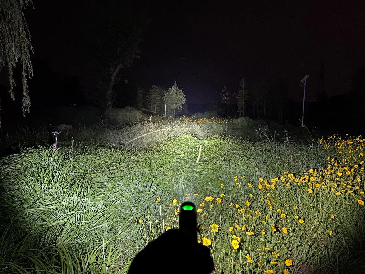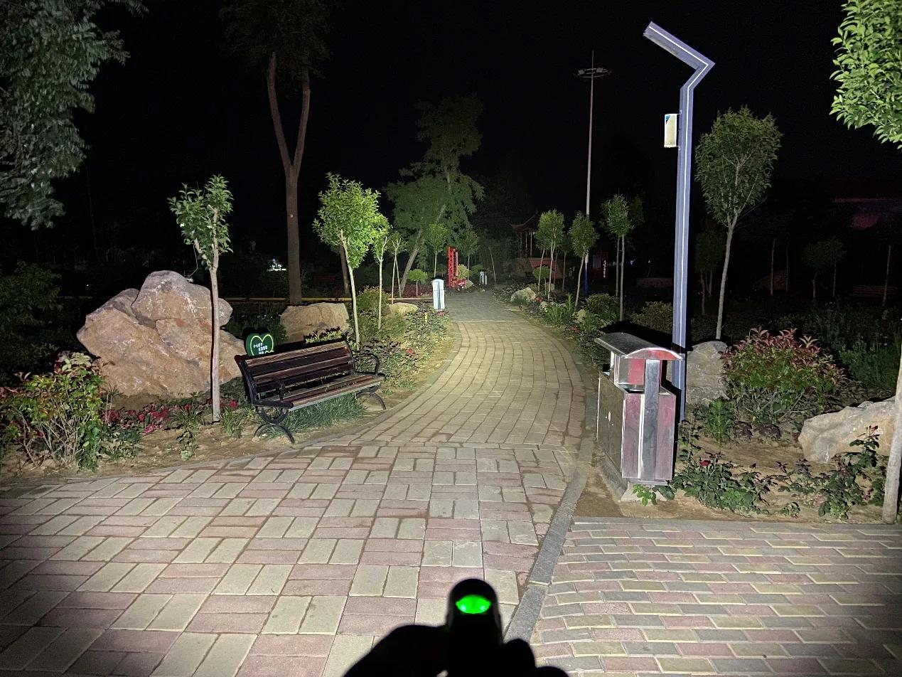 SC31 Pro采用流明纳斯SST40高性能LED灯珠,配合光面金属反光杯,投射出的光斑比较均匀,中间位置有明显的光斑,泛光区域也比较广阔。我手里的这款是5000K色温的灯珠,接下来一起来看下夜射,以下均为2000流明的极亮实际使用效果。