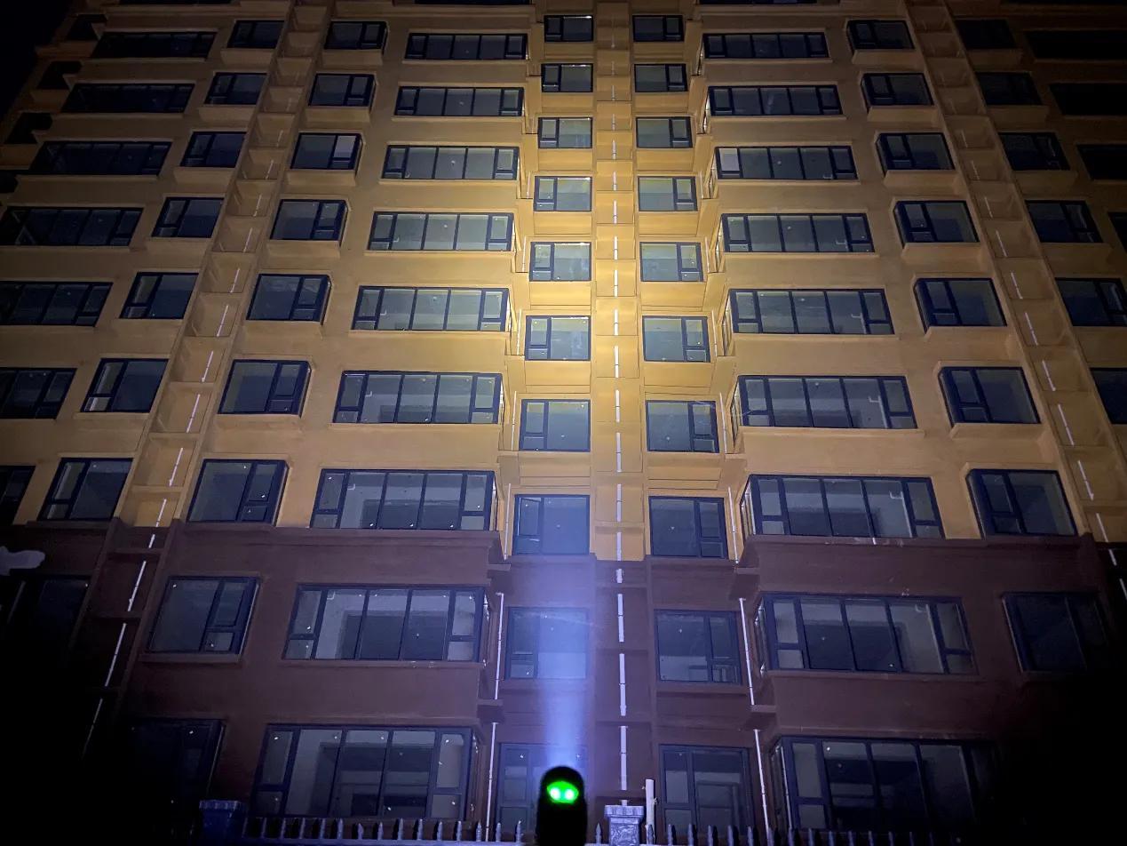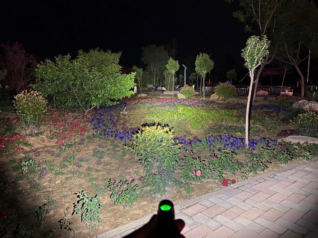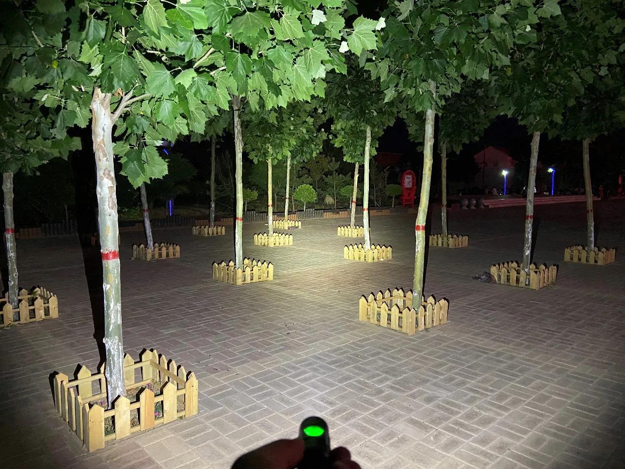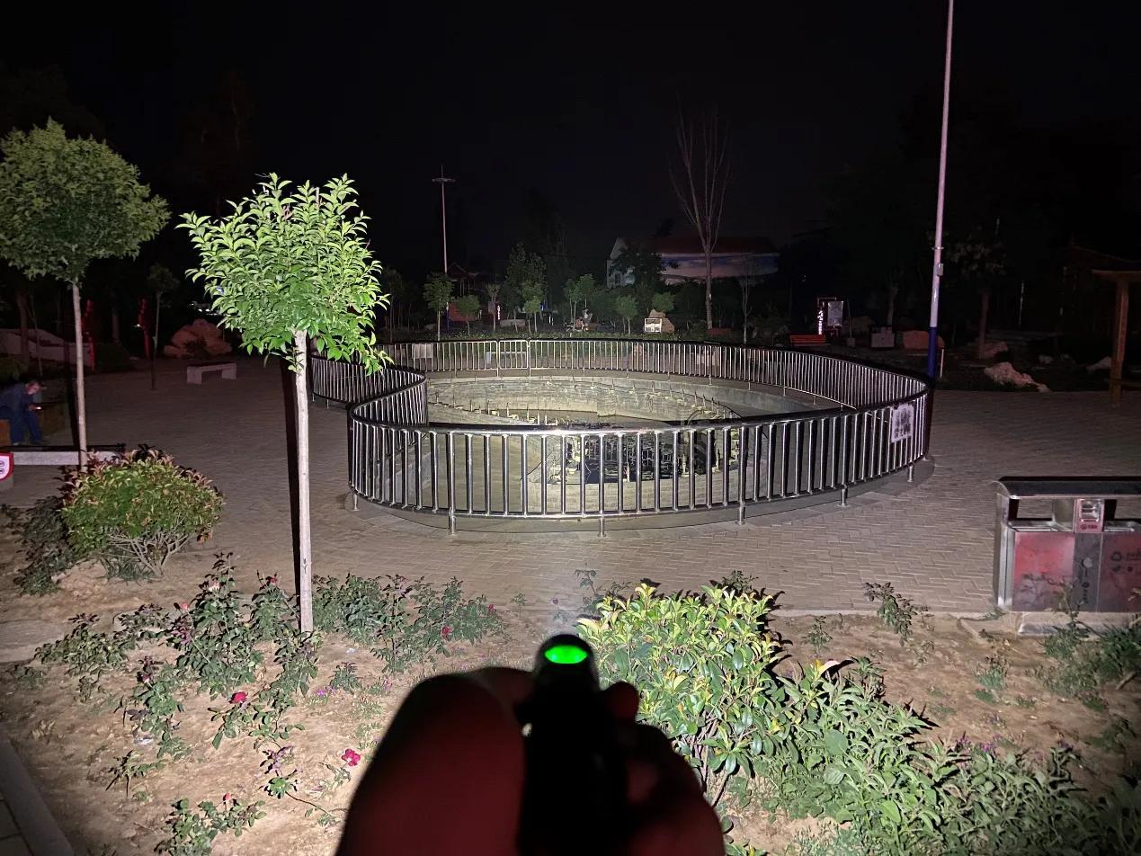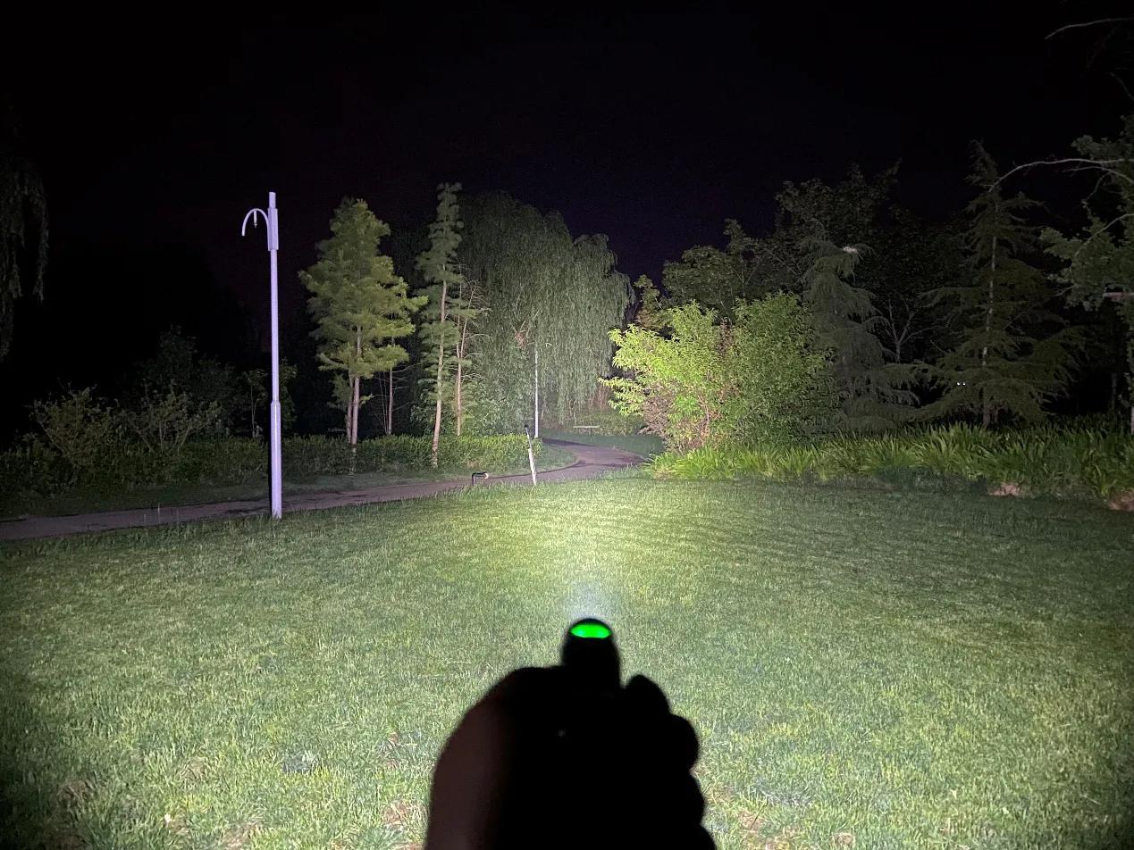 SC31 Pro采用流明纳斯SST40高性能LED灯珠,配合光面金属反光杯,投射出的光斑比较均匀,中间位置有明显的光斑,泛光区域也比较广阔。我手里的这款是5000K色温的灯珠,接下来一起来看下夜射,以下均为2000流明的极亮实际使用效果。