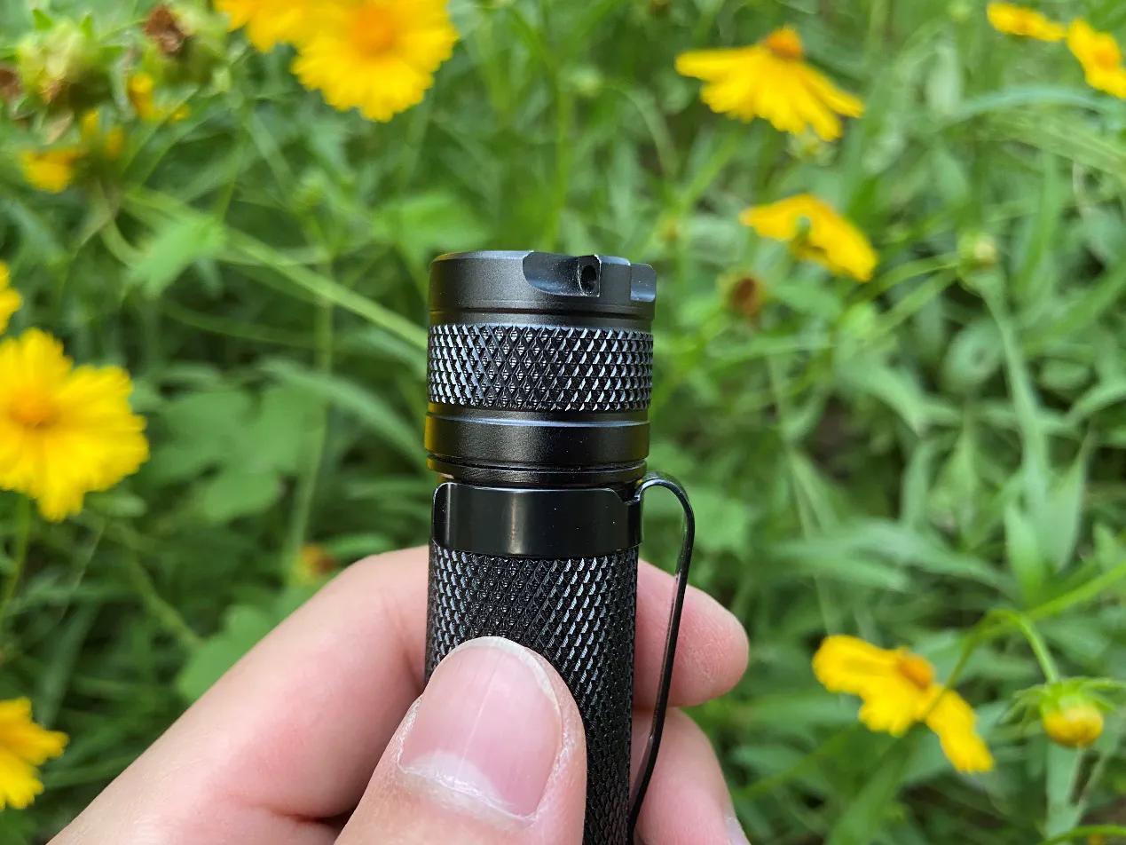 手电采用6061航空级铝合金壳体,搭配阳极氧化表面处理工艺,具有良好的耐磨,耐腐蚀等特性,细腻的氧化层也提供了良好的手感,再搭配上筒身遍布的菱形防滑纹理更具有握持感。