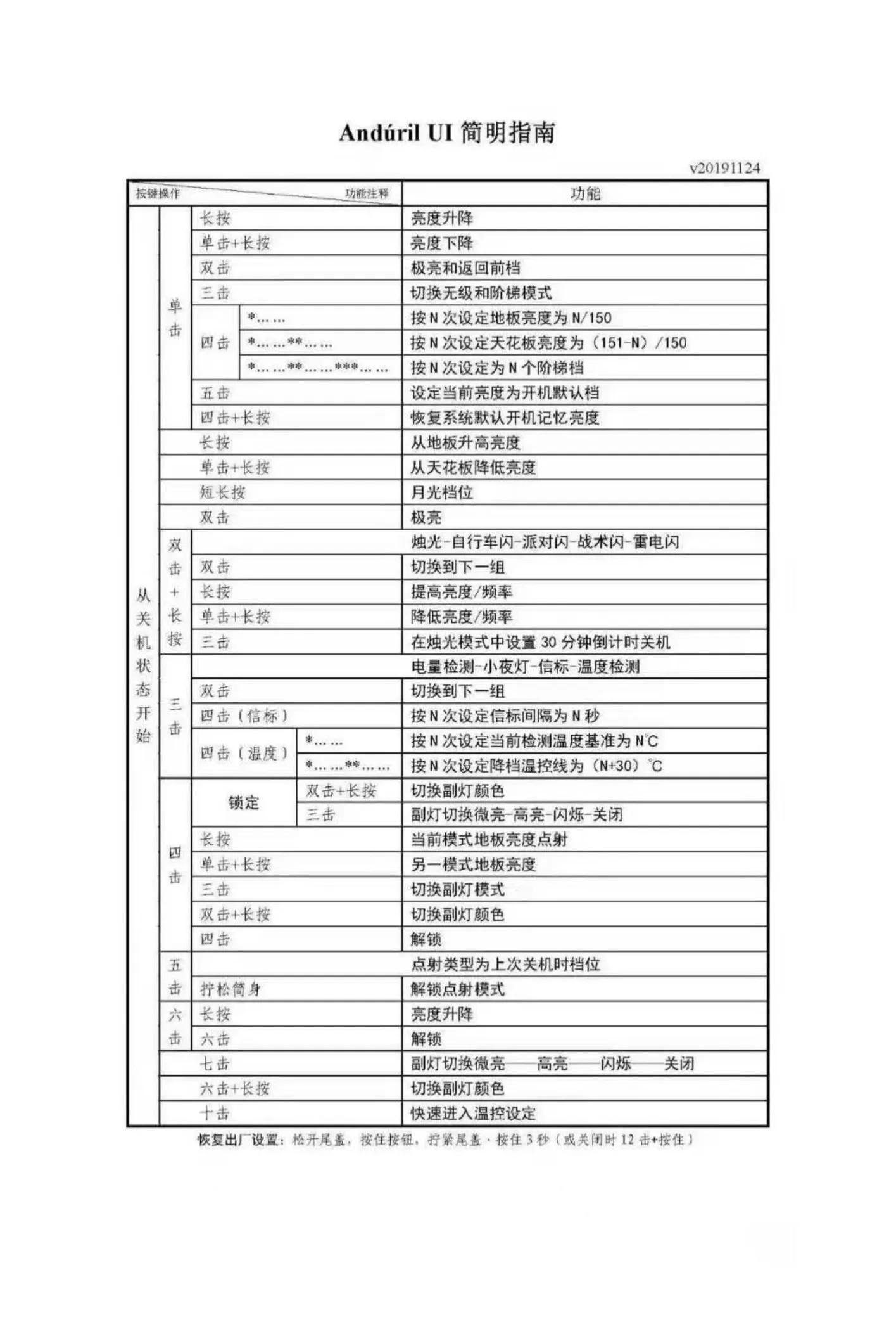 驱动是安德鲁的系统,固件版本是2020-03-18,无极调光用起来也非常的方便。同时还有很多的使用方式,例如定时,电量检测,战术爆闪,以及点射模式都是比较实用的。以下是详细的操作方式。