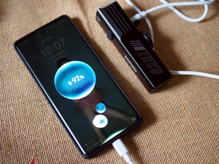 这款BS01车灯还具备反向充电功能,紧急时刻可以临时给手机等电子产品临时充电。在充电中也可以打开车灯来使用。自行车灯作为便携式充电器使用时,指示灯不会显示充电状态。当车灯的电池电量过低,不足以支持放电时,此时 LED指示灯会闪烁红色。