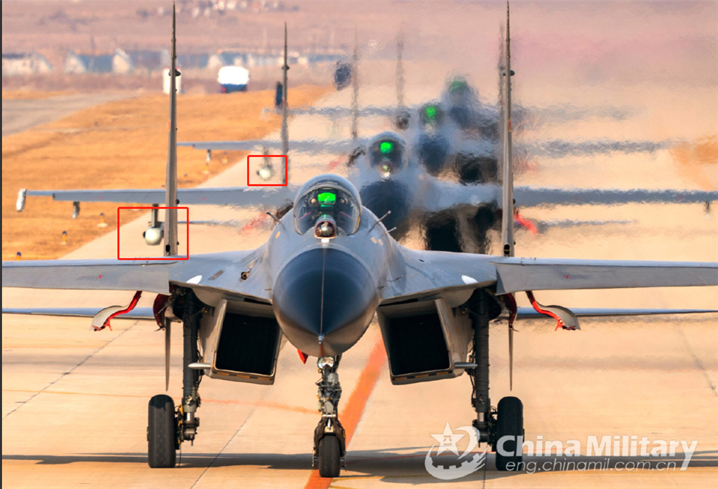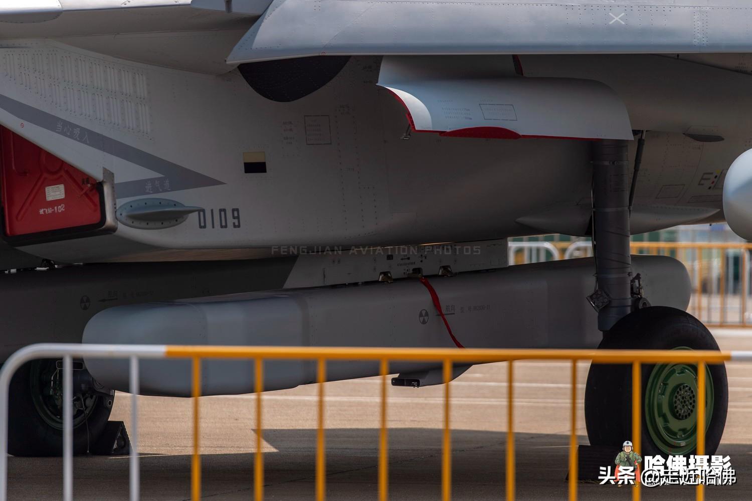 图片说明:歼-16左右两侧进气口下方各挂载了一个吊舱
