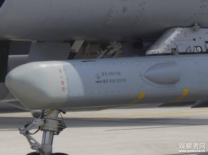 再来谈谈歼-16右侧进气口下方悬挂的电子对抗吊舱,其外形神似解放军目前目前装备的新一代通用电子干扰吊舱K/RKL700A,该吊舱有一个明显的特征,为左右两侧各有一个进气/散热口。目前,诸如歼-10系列、歼-11系列、歼-16等战机,甚至是俄制苏-30都有装备。