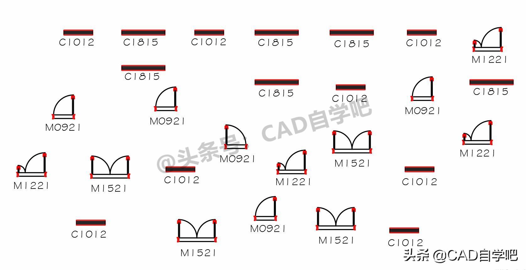 CAD建筑行业图纸(或其他专业用于计数统计),每一个楼层需要设置不同尺寸和类型的门窗,以表示在CAD建筑平面图中,且每一个门窗位置都有对于的编号说明;(如下图示)