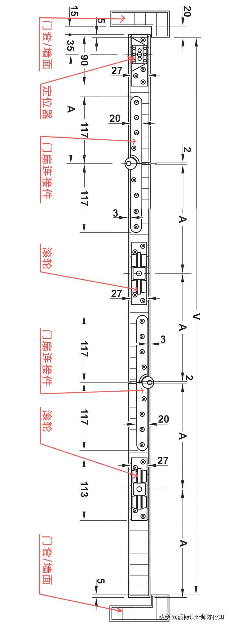 我们以最常见的吊轨式折叠门来解析折叠门的标准构造做法: