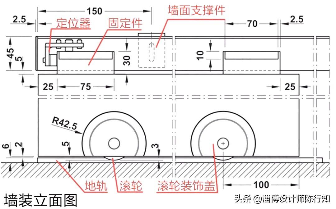 1、地轨必须为实心的钢条。2、导向轨只起到导向作用,受力与滑动主要靠底部承受。3、门的重量决定了地轨的大小于滚轮的载重。02.隐藏轨道推拉门的构造