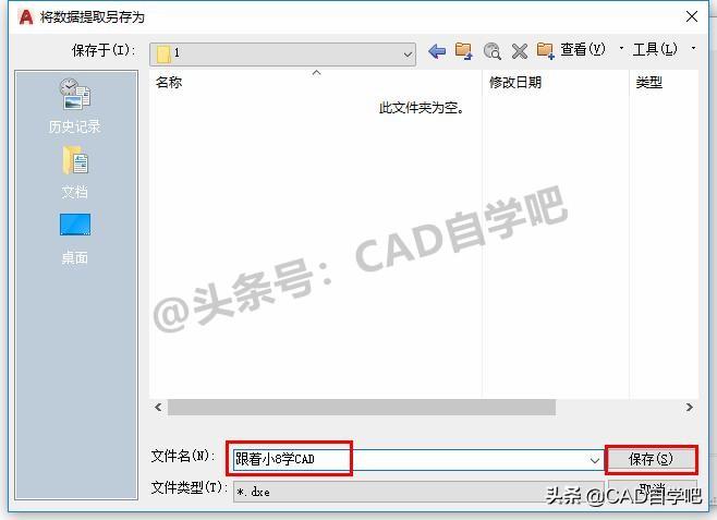 选择任意位置输入任意的文件名,保存数据提取文件*dxe;