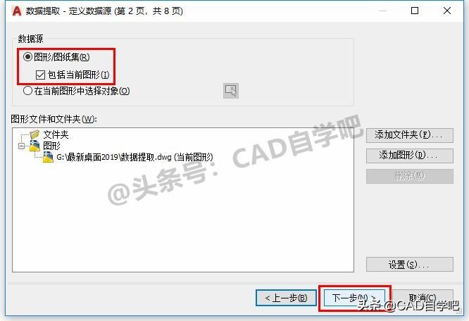如图示,选择图形/图纸集,选中✔包括当前图形,然后下一步;
