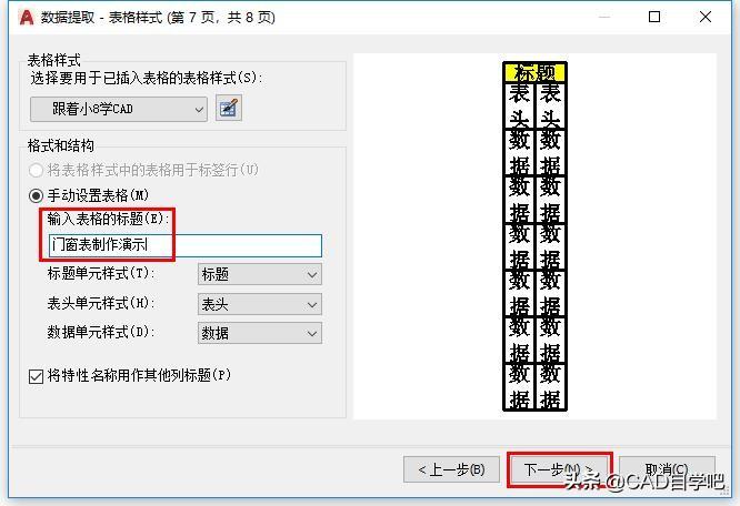 设置“✔将数据提取处理表插入图形”,将生成的表格插入到CAD当前文件内;