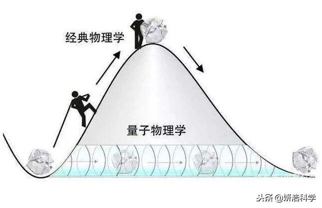 这样的描述符合我们的常识,所以通常我们都会认为这是非常正确的结论,然而量子力学却告诉我们,这个结论是错误的,因为如果把这个运动的球换成量子世界里的微观粒子,那么我们就会发现,在自身能量不足的情况下,微观粒子依然有一定的概率直接穿过障碍物。