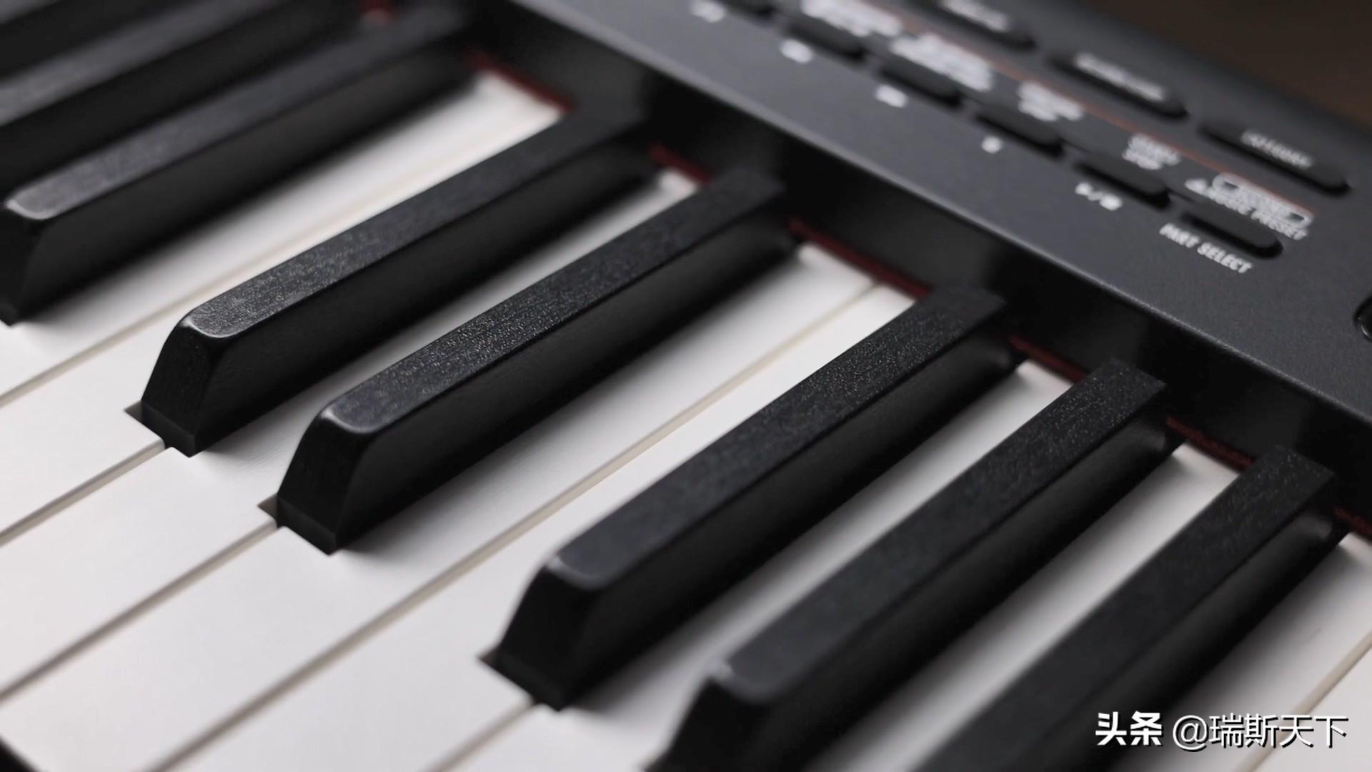 键盘采用的是全尺寸的88琴键,面材的设计手感中规中矩,内部的键床采用的是,带有第二代琴槌动作的结构,可以自定义调节3种灵敏度,能够模仿配重,传统钢琴的手感反馈,会有一定的提升,声音方面,自带了700种丰富的乐器音色,包括了舞台电钢,三角钢琴,管弦乐,打击乐以及管风琴,丰富的乐器的确达到了电钢该有的标准。