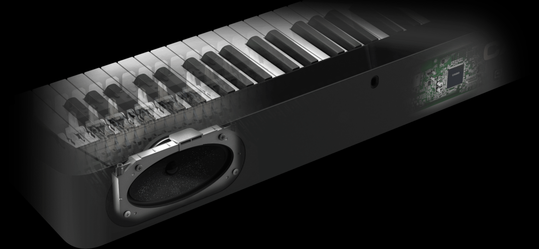 即使是弹奏轻微音符或松开琴键时发出的重锤击弦机动作的声音,也被收录到了PX-S1100或PX-S3100的音箱系统中。不管是柔和细腻,还是动感有力的演奏,都能轻松实现。