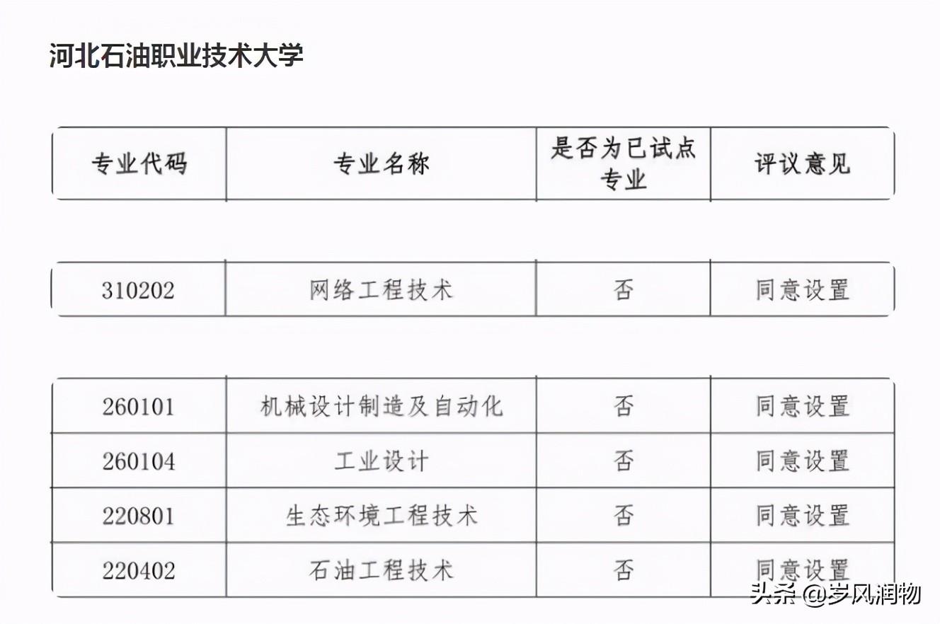 这些专业与此次新设的五个职教本科专业发生了较大变化,机械工程系除原有机械设计及自动化外,此次还发展了工业设计本科职业教育专业;化学工程系此次并没有化学工程与工艺本科职业教育专业,但是有生态环境工程技术专业;计算机系此次没有软件工程本科专业,但是新增网络工程技术本科专业;石油工程系的石油工程技术专业第一次被列入本科专业。
