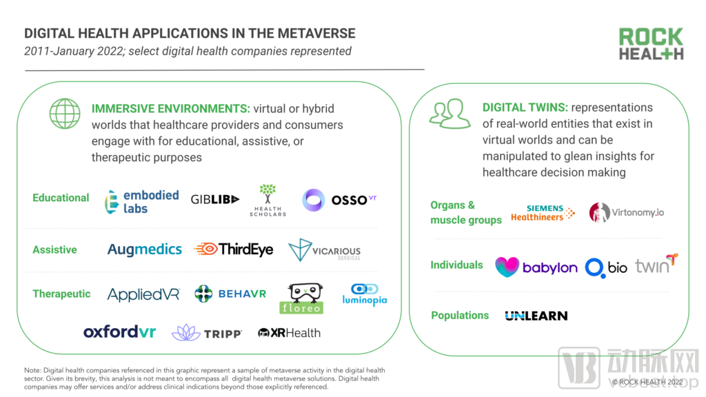 元宇宙中的数字健康应用企业示例(来源:Rock Health)