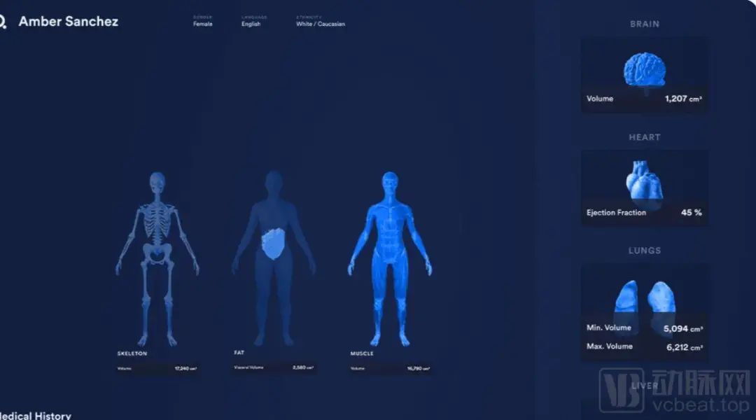除了器官,初创公司还在创造个体的全身数字双胞胎。Q Bio的Gemini平台可以通过人体全身扫描,获取患者的生命体征,扫描、病史和基因测试结果,从而创建整个患者解剖和生理学的复杂模拟,消费者可以将结果与专家、培训师、营养师和研究人员共享,以实现个性化护理。每当共享新的测试或扫描结果时,消费者的数字双胞胎也会得到相应更新。