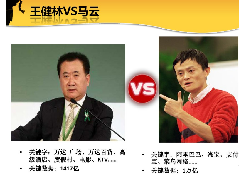 同学们,在上课前请先看下多媒体课件,课件上呈现的这位“大佬”你们认识吗?一位是王健林,一位是马云。这两个时代风云人物也是有着对中国经济发展独特的眼光,为此曾经设下“一个亿的赌局”?什么赌局?我们来看一看。