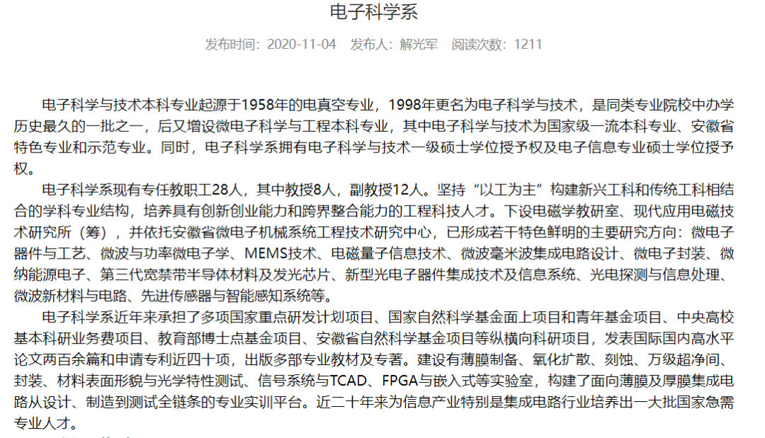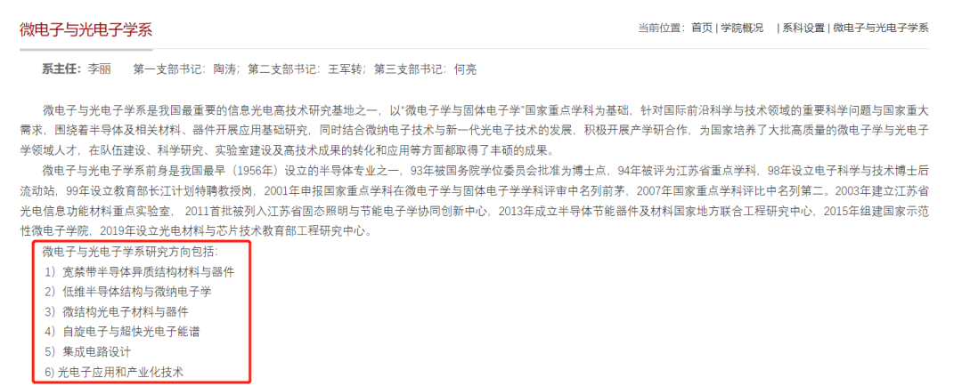 南大电子科学与工程学院包含了多个科系:电子工程、微电子与光电子学系、信息电子学系等。其中微电子与光电子学系前身是我国最早(1956年)设立的半导体专业之一。