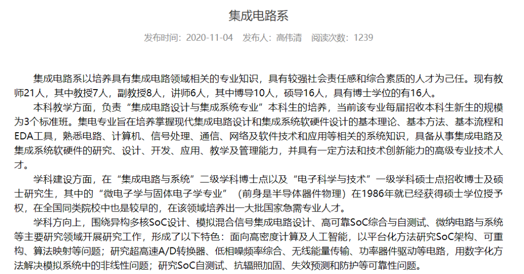 不过研究方向还是比较齐全的,模拟、数字、射频、混合信号的集成电路设计都有。