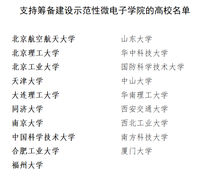 前9所是支持建设示范性微电子学院,后19所是支持筹备建设示范性微电子学院。 建设与筹备建设之间的区别很容易理解,就是字面上的意思。