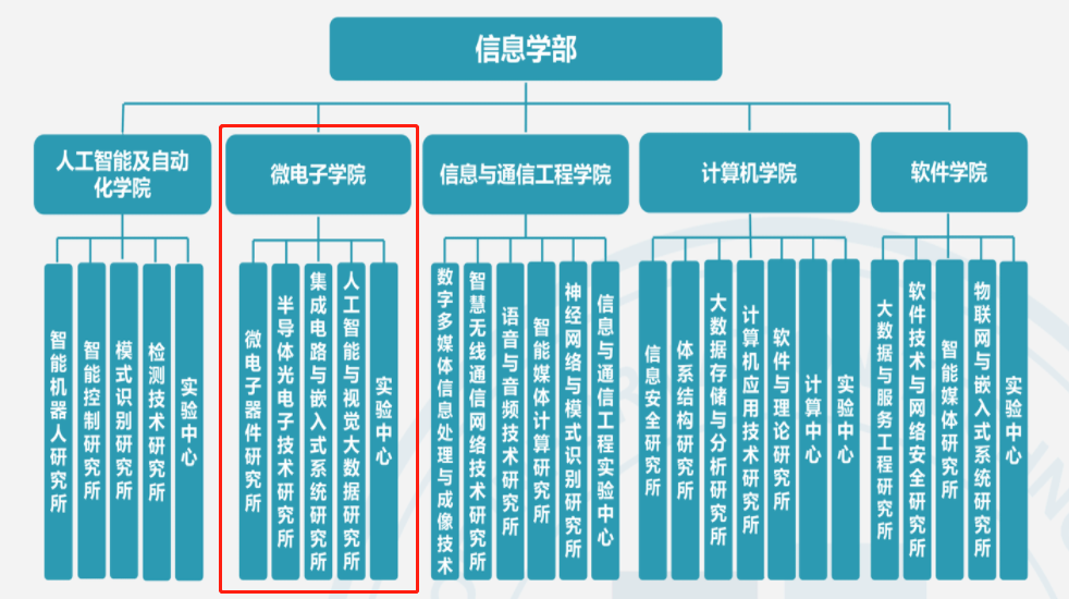 北京工业大学的电子科学与技术学院(微电子学院)隶属于信息学部。除了微电子学院,还有信息与通信工程学院、人工智能与自动化学院、计算机学院、软件学院,都属于现下的大热门。