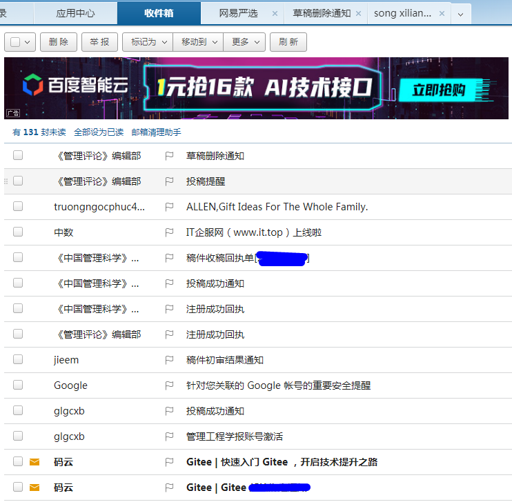 巧了,此时收到了新邮件
