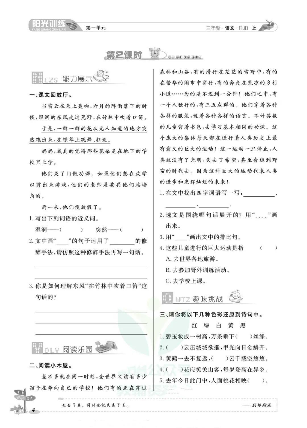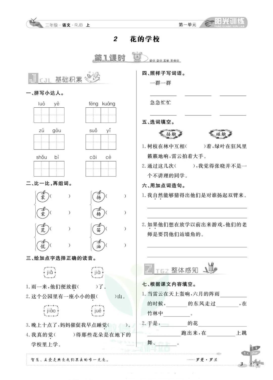 《阳光训练课时作业》小学各年级上册语文部编版电子版下载