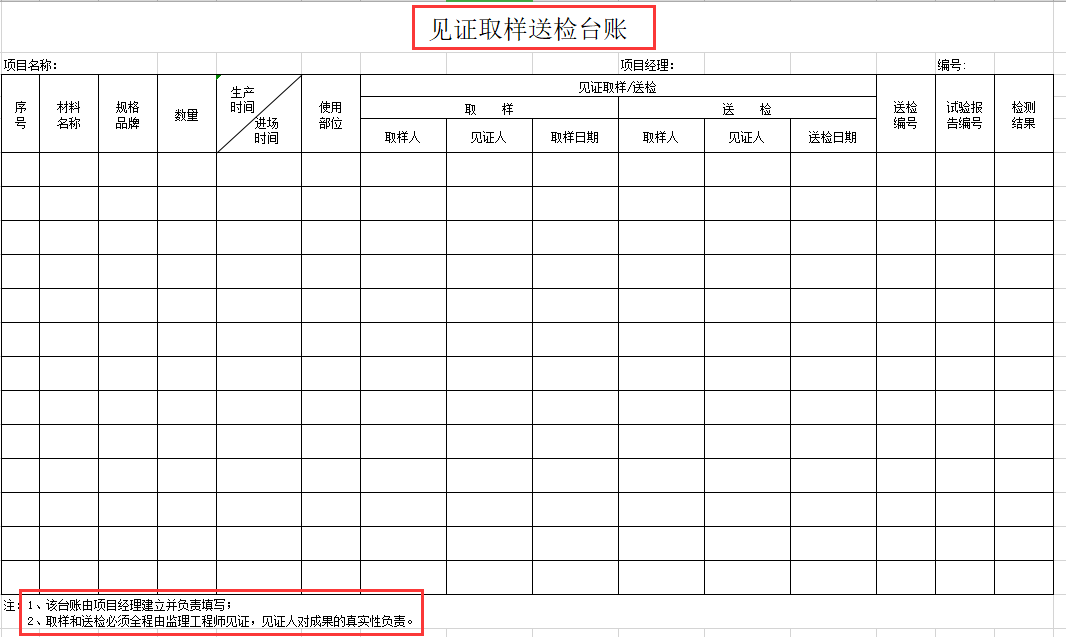 见证取样送检台账