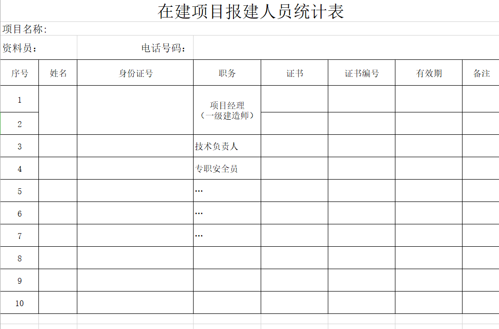 在建项目报建人员统计表