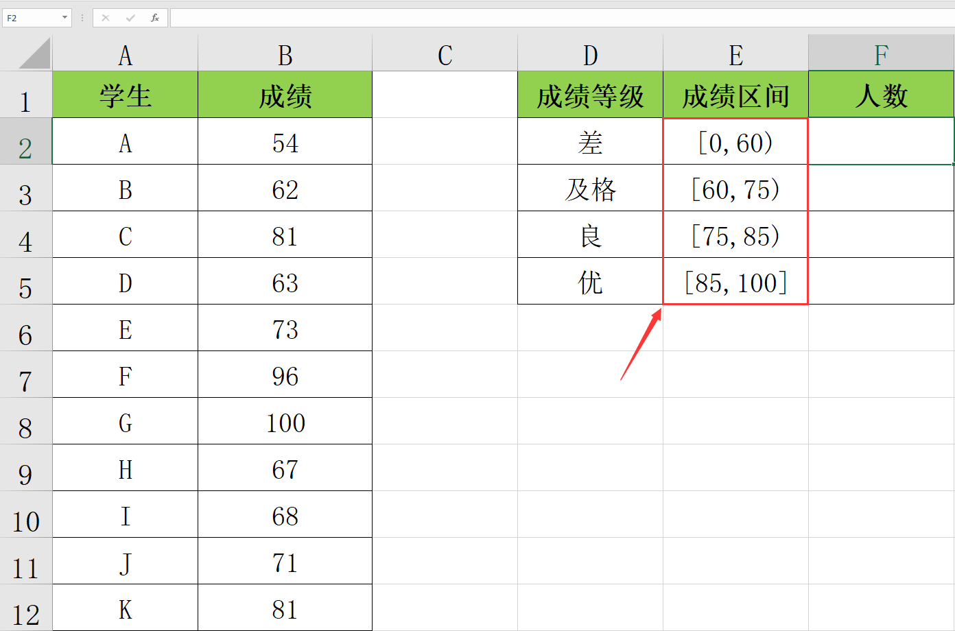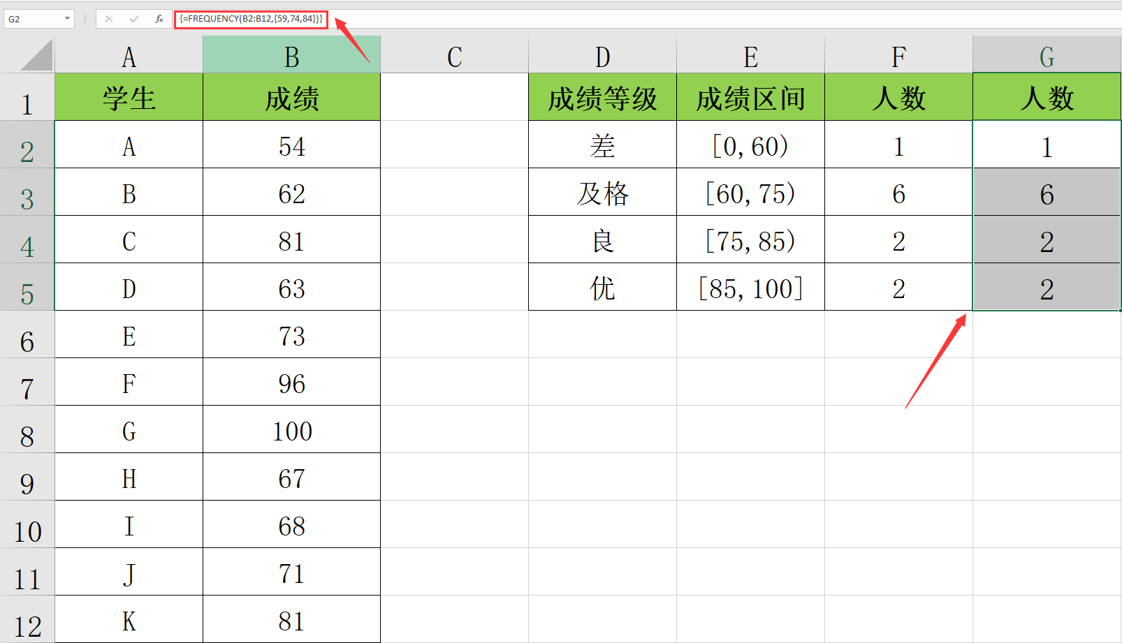 EXCEL学生成绩分层批量统计人数,Frequency函数三键统计轻松操作