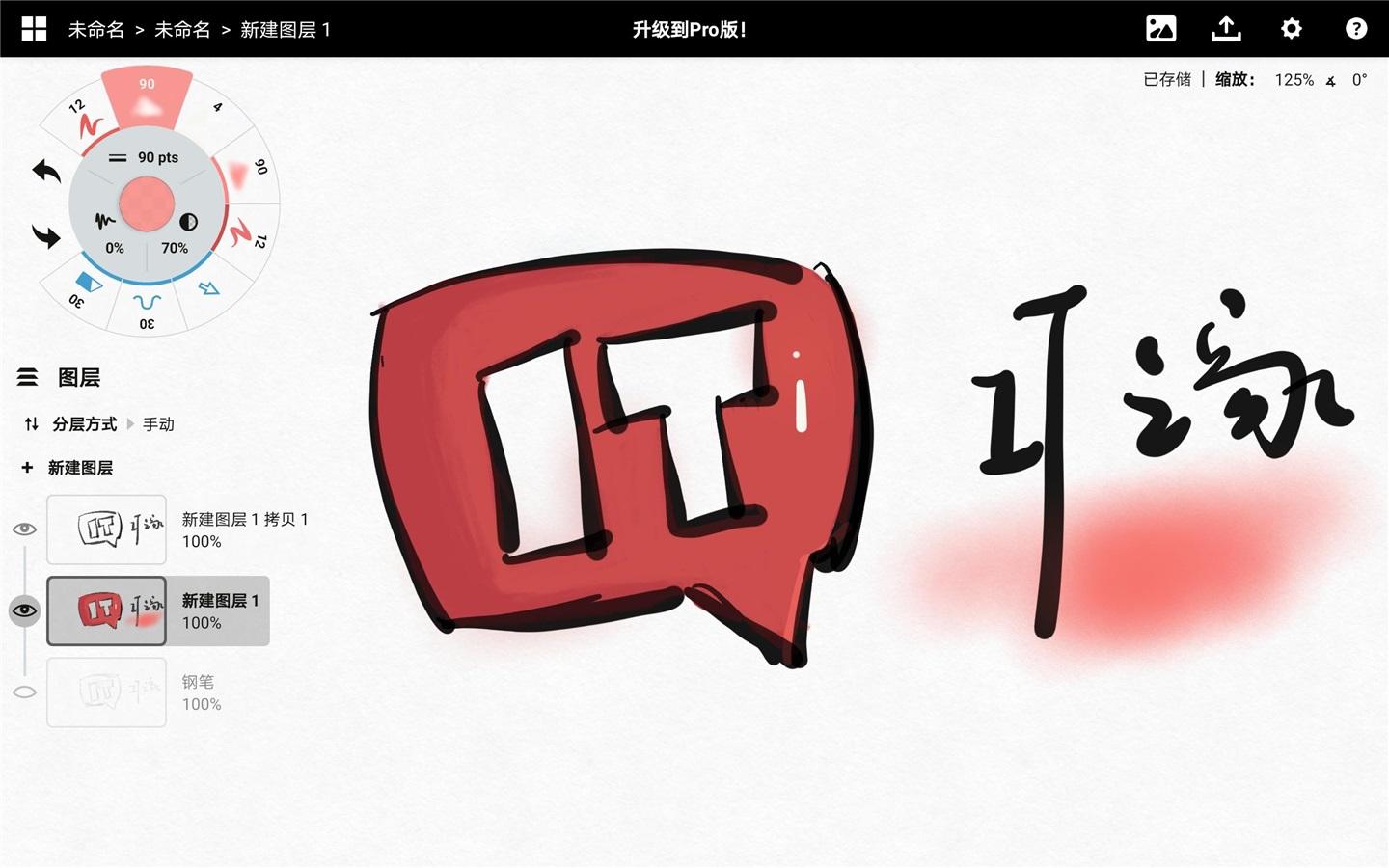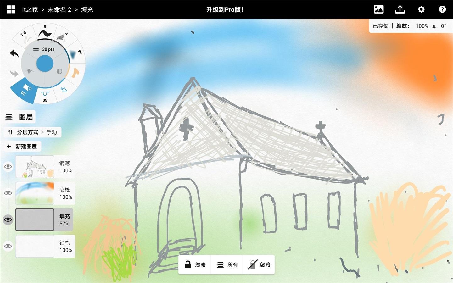 看一下下图中 “IT之家”的标识,这支笔在绘画过程中就起到了强大的助力作用,HUAWEI M-Pencil 具备 4096 级灵敏压感,低至 20ms 的超低延时,支持侧锋书写,指哪画哪,可准确地捕捉出一笔一划的粗细变化,落笔轻重都能在屏幕上体现。