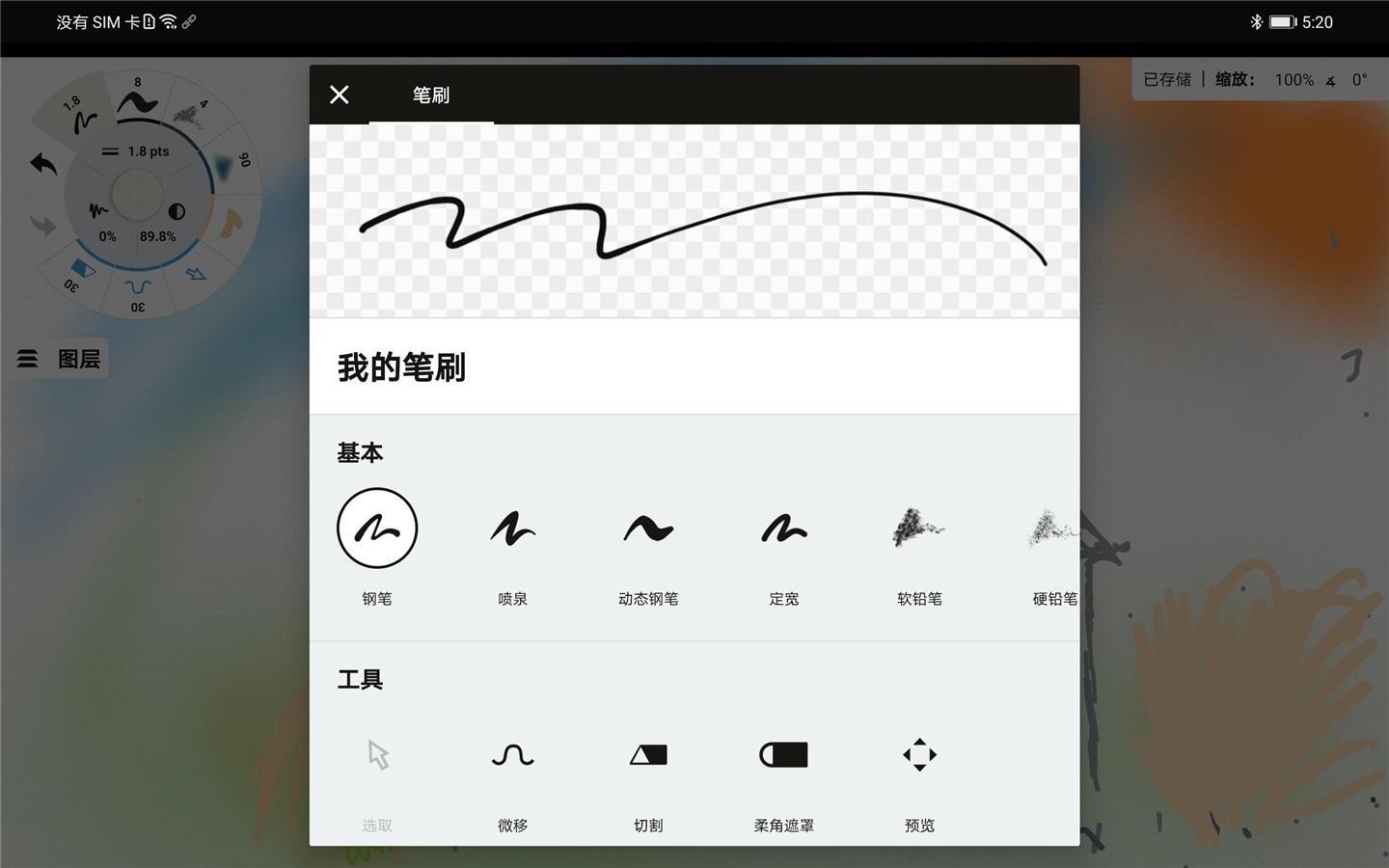 不仅如此,在概念画板内,你还可以选用各式各样的笔刷,比如软硬铅笔、喷枪、色粉笔、动态钢笔等等,笔刷的粗细大小也可以自由选择,这意味着,借助于概念画板应用,HUAWEI M-Pencil 手写笔就是一款万能的画笔,而华为 MatePad Pro 5G,则成为了你的专属画板,在它上面你可以肆意挥洒创意,不用担心笔刷用完了,或者是画板不够用了。