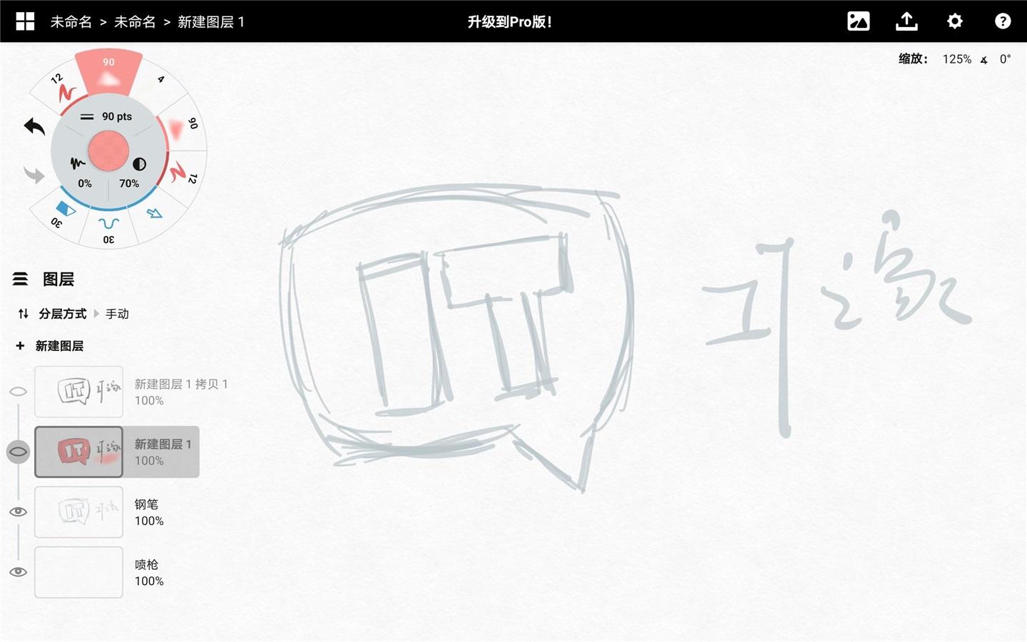 在绘画的过程中,选用 “钢笔笔刷”,当手写笔的笔尖轻轻点在屏幕上时,画布上就会呈现出一个 “小点”,如果你用力几分,在屏幕上划一下,则会呈现出一根粗壮而有力的线条,这种体验几乎与传统的钢笔完全一致。