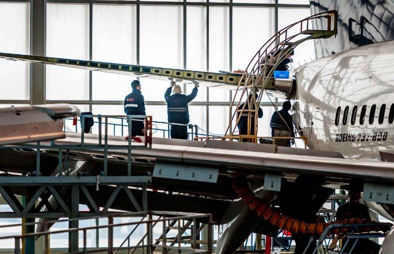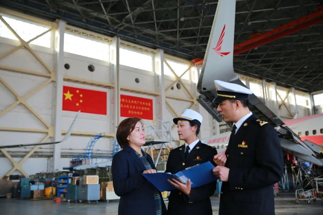 济南海关所属泉城海关关员正在山东太古飞机工程有限公司了解企业生产情况。图 / 冯勇