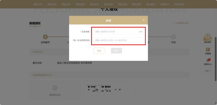 第三步:添加被授权企业信息或者选择被授权企业。