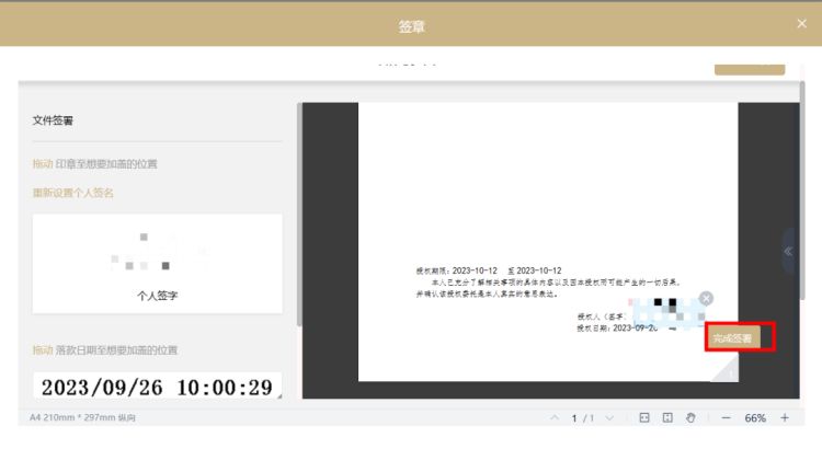 第五步:通过在线签名,即可完成线上授权签署。