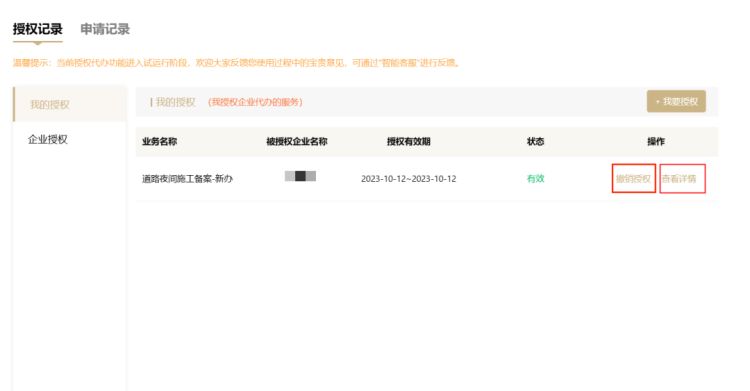 温馨提示:授权完成后可在授权记录中查看详情和撤销授权。