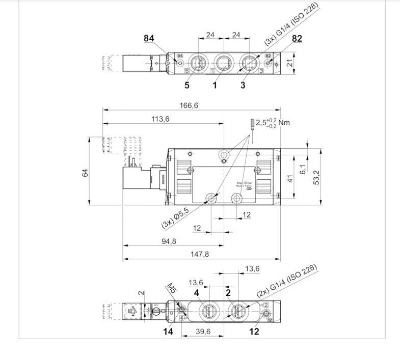 操作电子额定流量Qn1500 l/min换向原理5/2压缩空气 接口 出口G 1/4最小运行压力3 bar最大运行压力10 bar工作电压DC24 V电压偏差 DC-10% / +10%手动控制装置锁定式电气连接 类型多芯插头电气连接 尺寸ISO 15217, C 型操作元件单线圈密封原理软密封先导内部预控阀的宽度15 mm阀门结构形式滑阀,正重叠连接类型管式连接复位装置带弹簧复位控制压力最小3 bar最大控制压力10 bar最低环境温度-10 °C最高环境温度50 °C介质温度最小值-10 °C介质温度最大值50 °C介质压缩空气特点