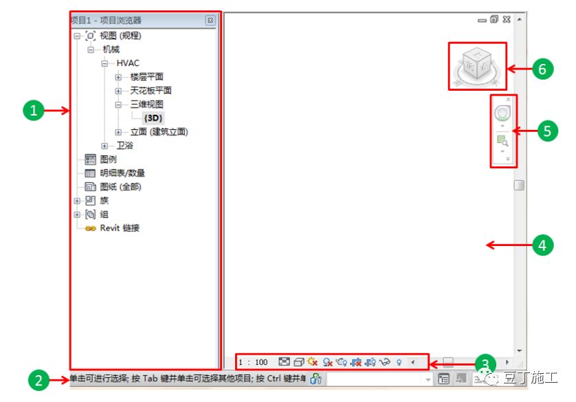用户界面图元,如功能区、选项栏和项目浏览器可以帮助大家有效地工作,下面的准则有助于使用用户界面。