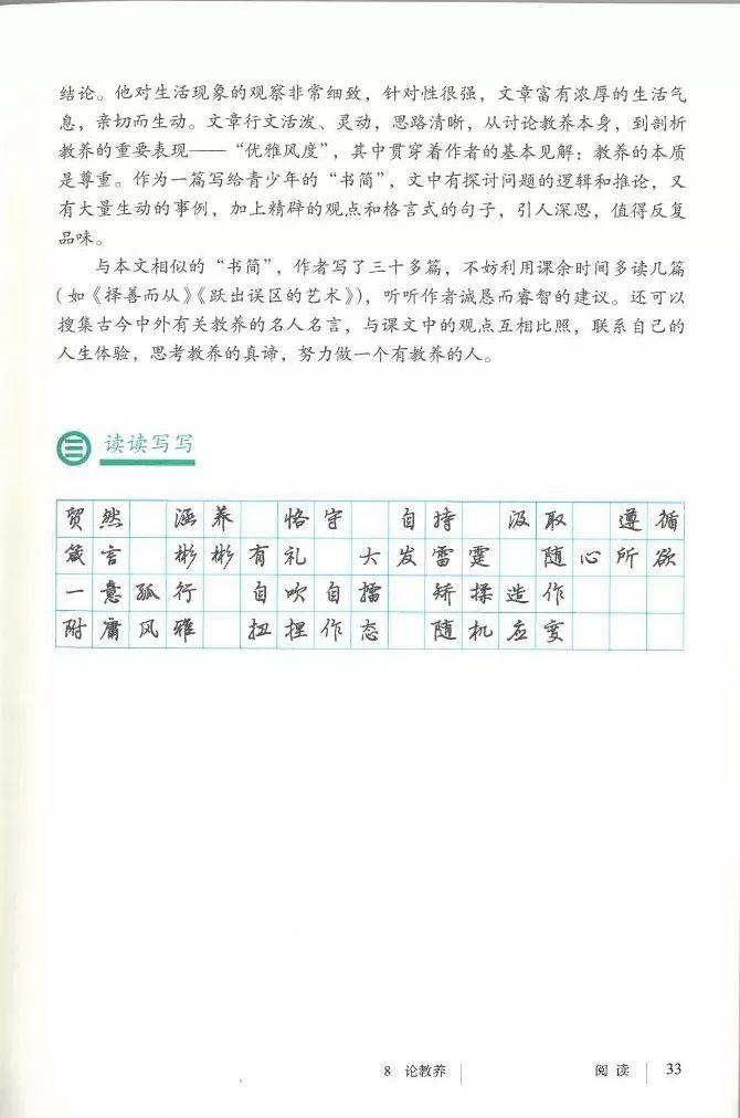 教材还融入文化背景知识学习,使学生学习语文同时,也能够解到丰富历史和文化知识,每个单元都有“文化探索”环节,介绍与阅读材料相关历史背景、文化传统等,这不仅增加学习趣味性,也拓宽学生知识视野
