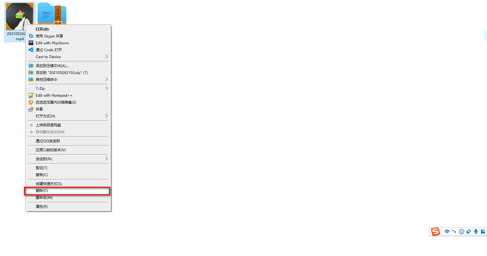 6、压缩完成后,我们可以看到有两个文件,这时候我们可以在原文件上点击鼠标右键,按住键盘上的左边的Shift键后鼠标左键选择删除。然后在弹出的框框点击鼠标左键选择是,这时候就可以永久删除我们未加密码的文件了。这样我们就只有一个加了密码的文件。