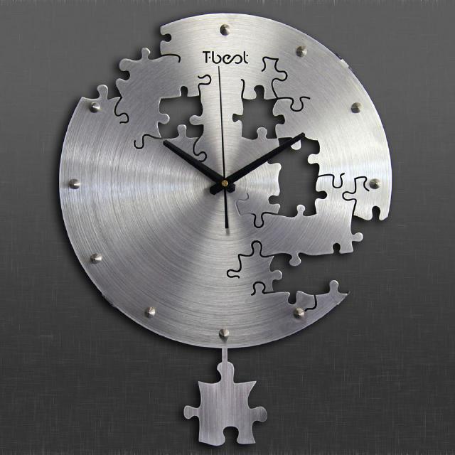 艺术感十足的创意挂钟,时间的拼图艺术,抽象又魔幻,简单的金属拉丝盘面显得质感十足,零散的拼图碎片正在拼凑着一个完整的时间。采用航空金属材质,优质耐用,简单的铆钉,代表每一个不同的时刻,简约的指针缓缓移动。低调的不凡品质,优质机芯,静音工作,保证时间精准的同时休息时也绝不会打扰到你。
