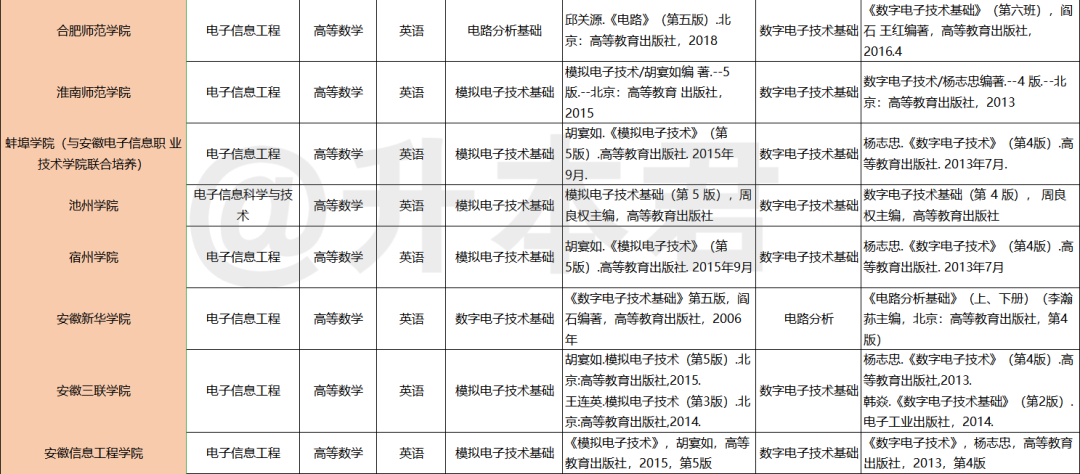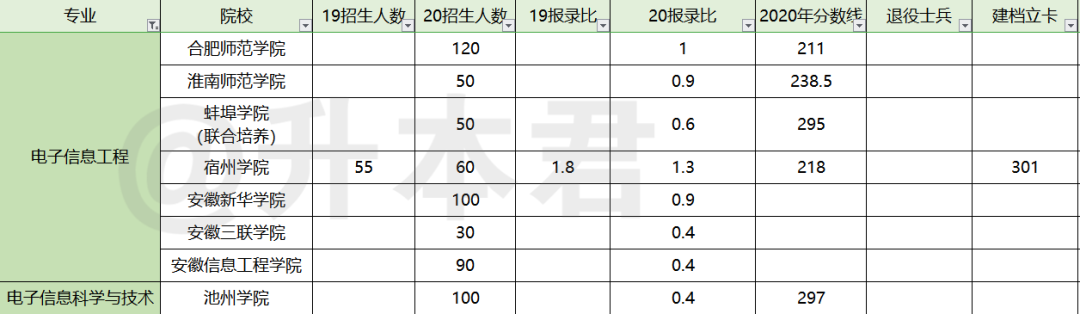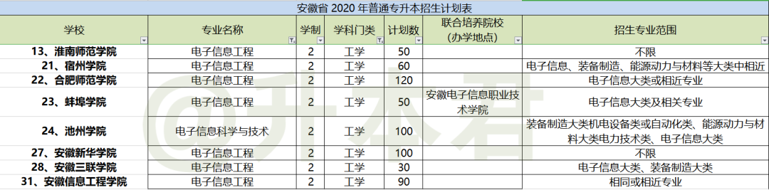 根据2020年安徽省统招专升本招生计划可知,招电子信息工程的学校共8所,分别是: