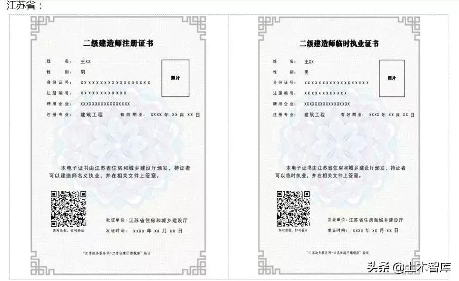 对批准注册的二级建造师发放电子化《中华人民共和国二级建造师注册证书》(以下简称电子证书,式样见附件1),持有二级建造师临时执业证书人员发放电子化《中华人民共和国二级建造师临时执业证书》(以下简称电子证书,式样见附件2),原纸质证书不再回收,自行失效。未换发电子证书且在有效期内的纸质证书可继续使用。