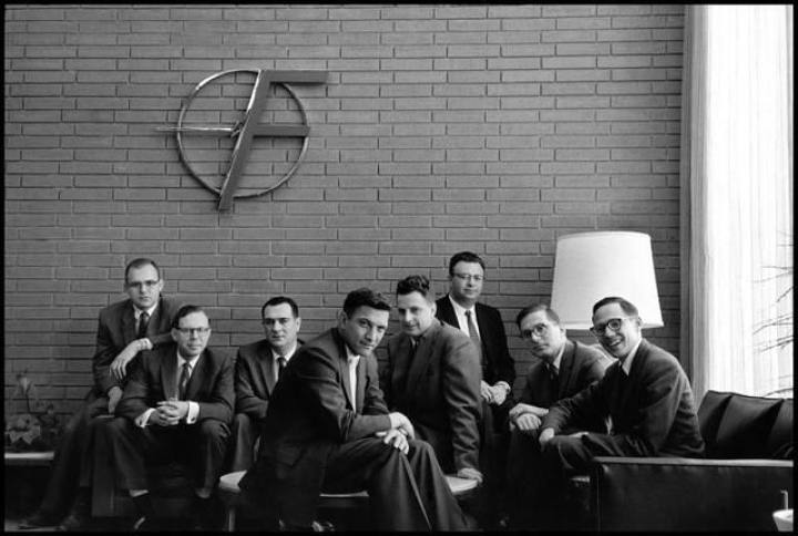 他们的年龄都在30岁以下,学有所成,有获得双博士学位者,有来自大公司的工程师,有著名大学的研究员和教授,都处在他们创造能力的巅峰。肖克利曾称他们为“我的博士级生产线”。而肖克利虽然精于科研制造,却并不是特别会管理他的“博士级生产线”,正如戈登 . 摩尔曾说:“当实验室里出现一件小事故后,肖克利会要求我们用测谎仪来测试谁说了谎,谁又是无辜的。”他在菲尔科公司的技术报告会上把八叛逆之一的诺伊斯挖来,却在将其招入后对他的工作产生了猜疑,请求贝尔实验室重新检测他所做的实验数据。再加上他在大量生产晶体管时对生产的错误指挥,人心逐渐不稳。最终,1957年,8位青年中的7位(没有诺伊斯,诺伊斯后来被鼓动一起策反)集体叛逃,自立门户。在青年出走后,肖克利实验室一蹶不振,肖克利本人也只得返回大学教书。【集成电路——两拨天才的竞逐】1957年10月,地处美国东部的仙童照相器材和设备公司,为“八叛逆”投资了3500美元种子资金,组建起一家以诺依斯为首的仙童( Fairchild)半导体公司,在嘹望山租下一间小屋,着手制造一种双扩散基型晶体管,以便用硅来取代传统的锗材料。仙童的业务逐渐发展,员工增加到100多人。同时,一整套制造硅晶体管的平面处理技术也在仙童日趋成熟。科学家赫尔尼把硅表面的氧化层挤压到最大限度。1959年1月23日,诺依斯等人又首创了一套晶体管制造方法,并由诺伊斯本人在日记里进行了详细的记录:他们先在硅片上加上一层氧化硅作为绝缘层,并在透明材料上绘好晶体管结构,之后用拍照片的方法把结构显影在硅片表面氧化层上,然后,在这层绝缘氧化硅上腐蚀去除不需要的图形后,再把具有半导体性质的微粒扩散到硅片上,用铝薄膜将已用硅扩散技术做好的器件连接起来。这样的话各器件之间就会有良好的电绝缘,这种工艺叫做平面处理,它极大的提高了晶体管的生产效率,使得晶体管可以大批量工业化生产。随后,仙童公司的半导体流水线很快成型。而几乎在同一时期,在美国的南部达拉斯市,德克萨斯仪器公司的基尔比也开始致力于电路的集成化。